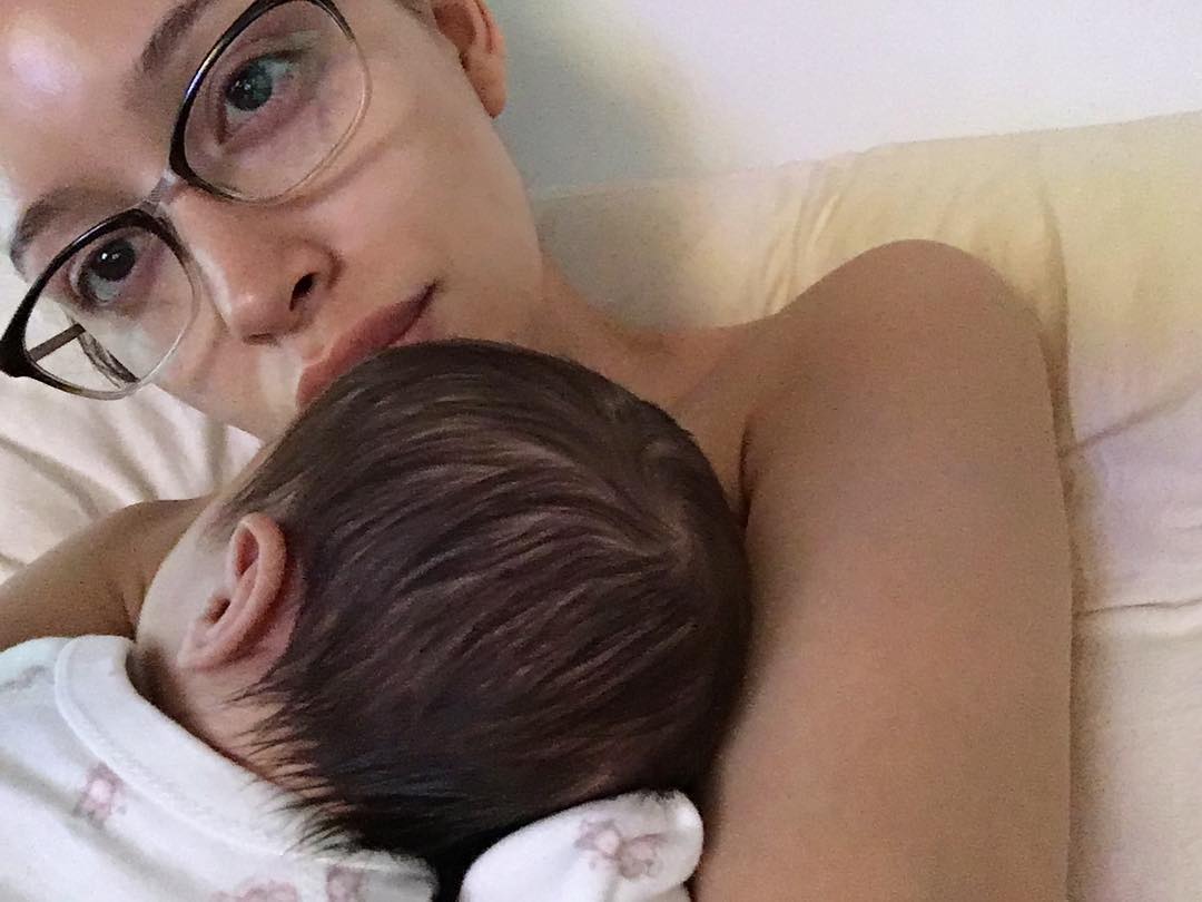 「小さなWと私より、母の日おめでとう!」というコメントとともに、生まれたばかりの赤ちゃんと一緒に写る自身の写真を投稿した。
