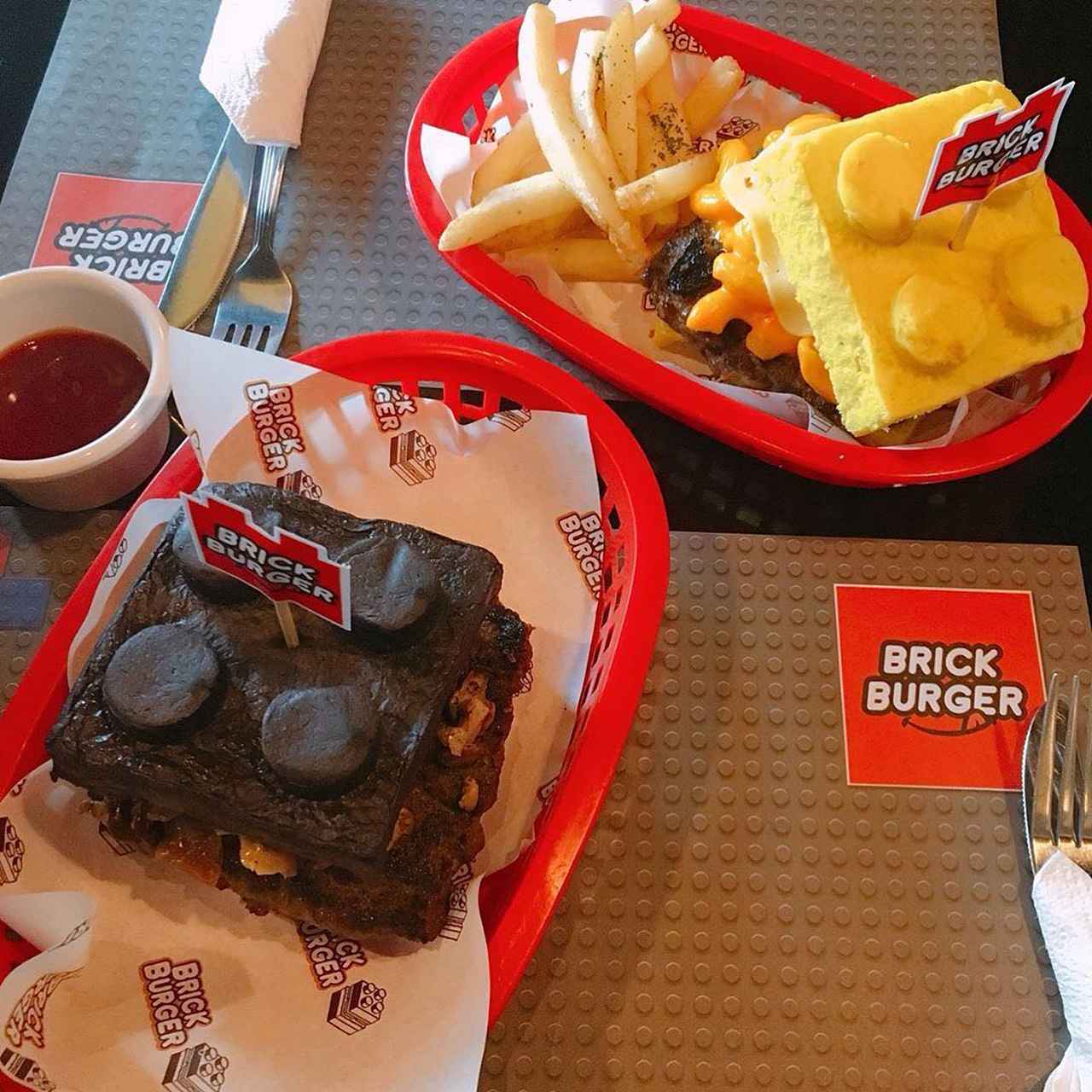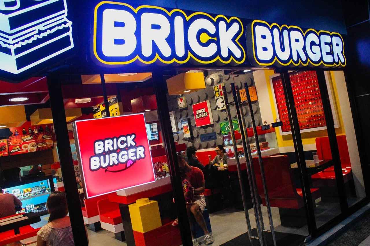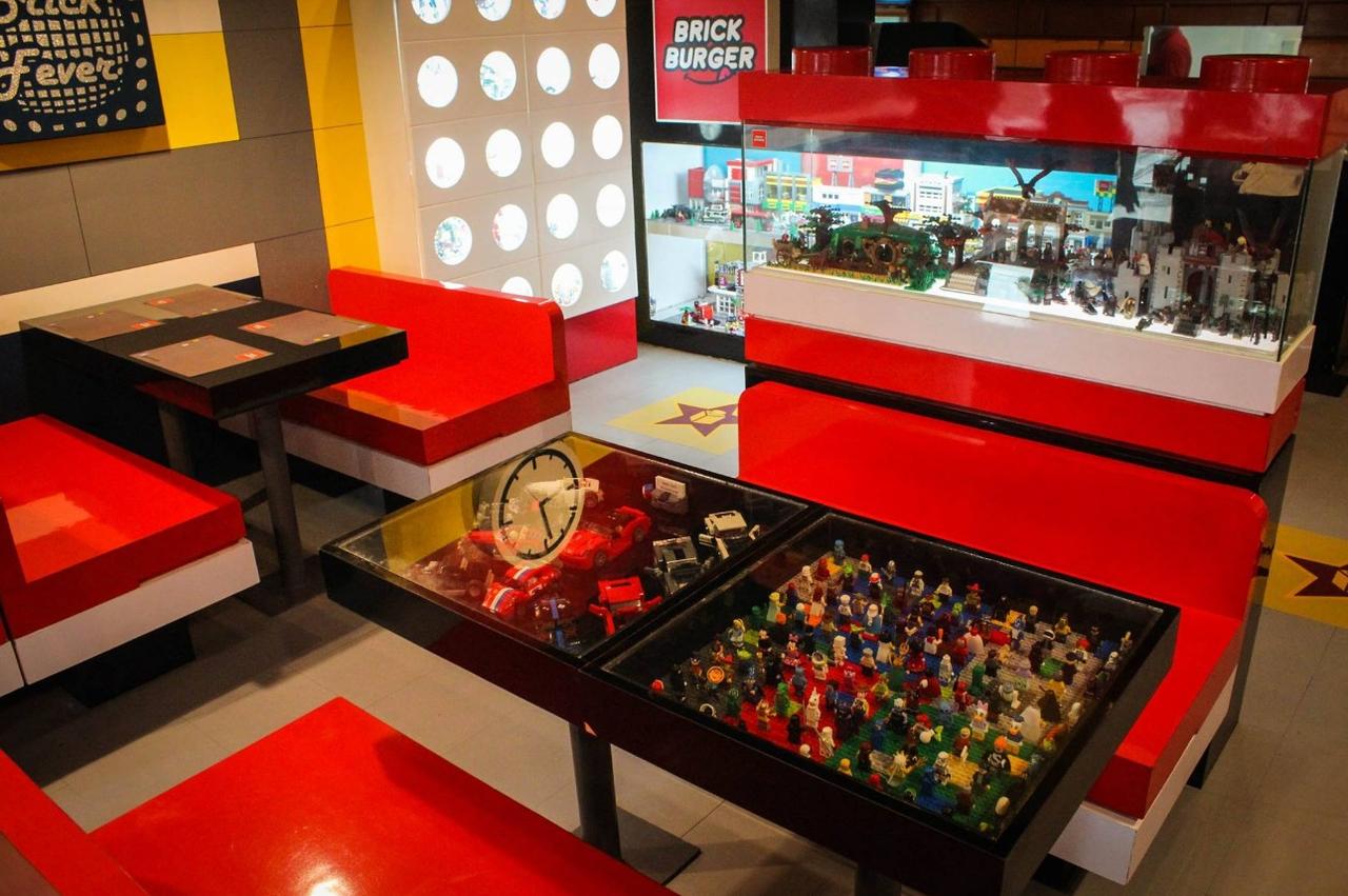 レゴにインスパイアされたブリックバーガーと名付けられたハンバーガー店は、店の外からも見てわかるように、レゴ一色。