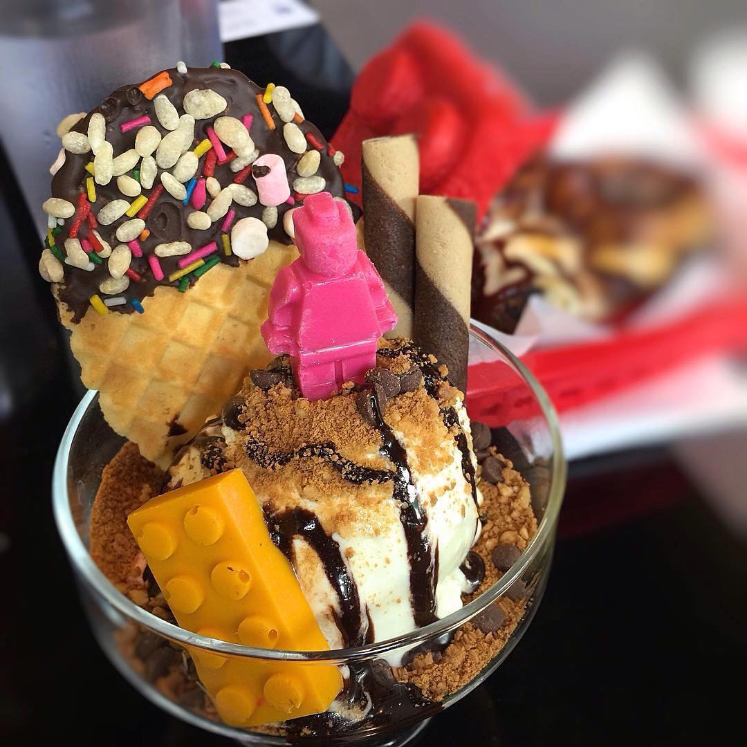 本物さながらの色とりどりのブロックに見立てたバーガーは子供だけじゃなく大人までも心奪われるものに。デザートにもレゴブロックと人形がついており、レゴファン胸アツの1品。