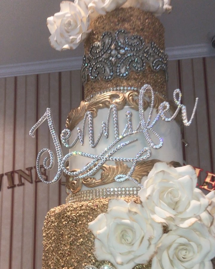 なんとこのジェニファーのケーキは、1,000個以上ものスワロフスキーを使用。むしろこのケーキが食べられるのか疑問だけれど、大物シンガーのジェニファーにはふさわしいケーキに。