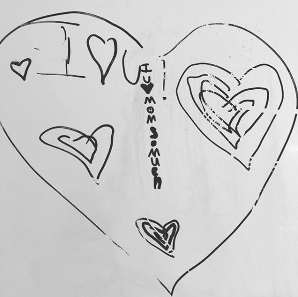 フリン君は大きなハートのなかに、いくつものハートを描き、その中には「ママ大好き」、「ママすっごく大好き」とのメッセージが。これにはミランダも「心が溶けそう」と大感激。