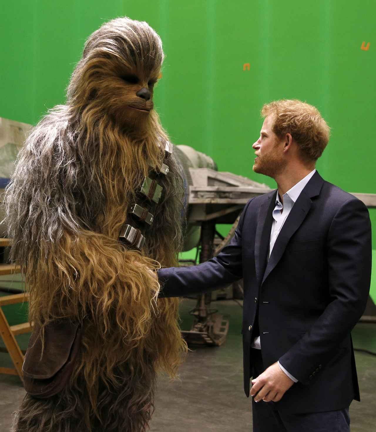 The Duke of Cambridge and Prince Harry visit the Star Wars film set at Pinewood Studios to recognise the wealth of British creative talent involved in the production of the Star Wars films in Iver Heath, Buckinghamshire, UK, on the 19th April 2016. Picture by Adrian Dennis/WPA-Pool