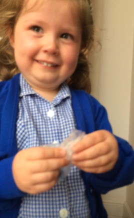 すると最終手段に出たお母さんが、「ほら、中にお菓子があるわよ」とカードにくっついているお菓子を見せたところ、急に泣き止み笑顔で、「今食べていい?」と袋を開ける少女。そこでお母さんが「弟のこと大好き?」と聞くと、「ううん」と答え、まだ弟が生まれることは納得していないよう。