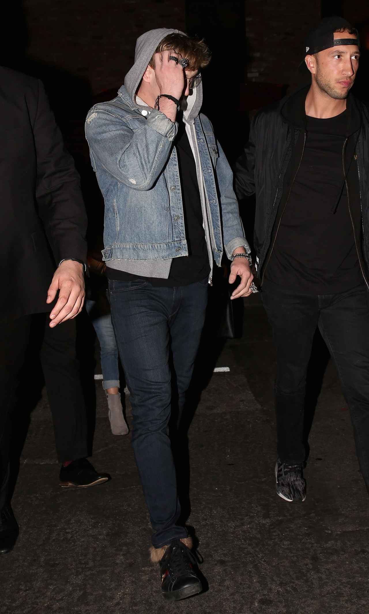 騒動以前は、注目されることが大好きで、パパラッチのカメラを見つけると自らポーズを決めるなどして猛アピールしていた彼だったが、この日は、一瞬たりともカメラのレンズと視線を合わせぬよう、うつむき、パーカーのフードを被り、手で顔を覆い隠すという徹底したガードぶり。