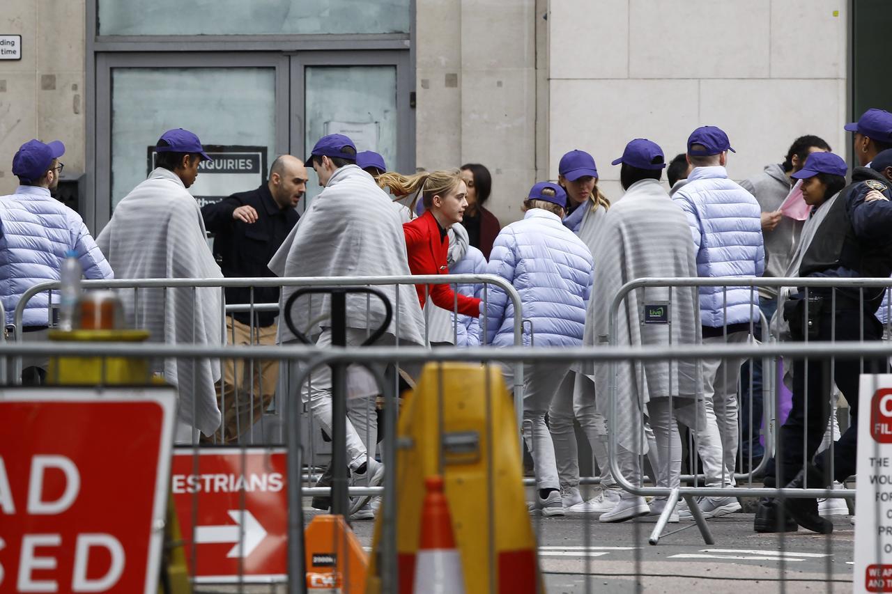 また別のシーンでは、キャスリン・ニュートン演じるジャーナリストのヒロインの足もとで多くの人が地面に倒れこんでいたり、警察が出動したりしたところが撮影されていた。