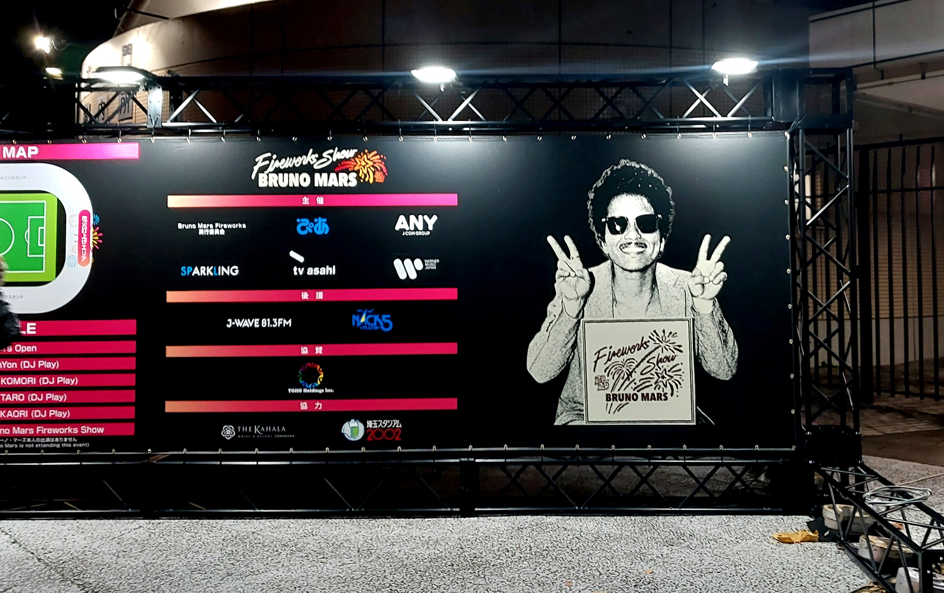 本イベントで花火を担当したのは、東京・隅田川花火大会をはじめ、国内外のフェスティバルでその芸術性と技術力を高く評価されてきた、1904年創業の老舗花火会社・株式会社イケブン。ブルーノ・マーズの音楽に合わせて、日本の伝統と革新が融合した圧巻の花火演出が夜空を彩った。