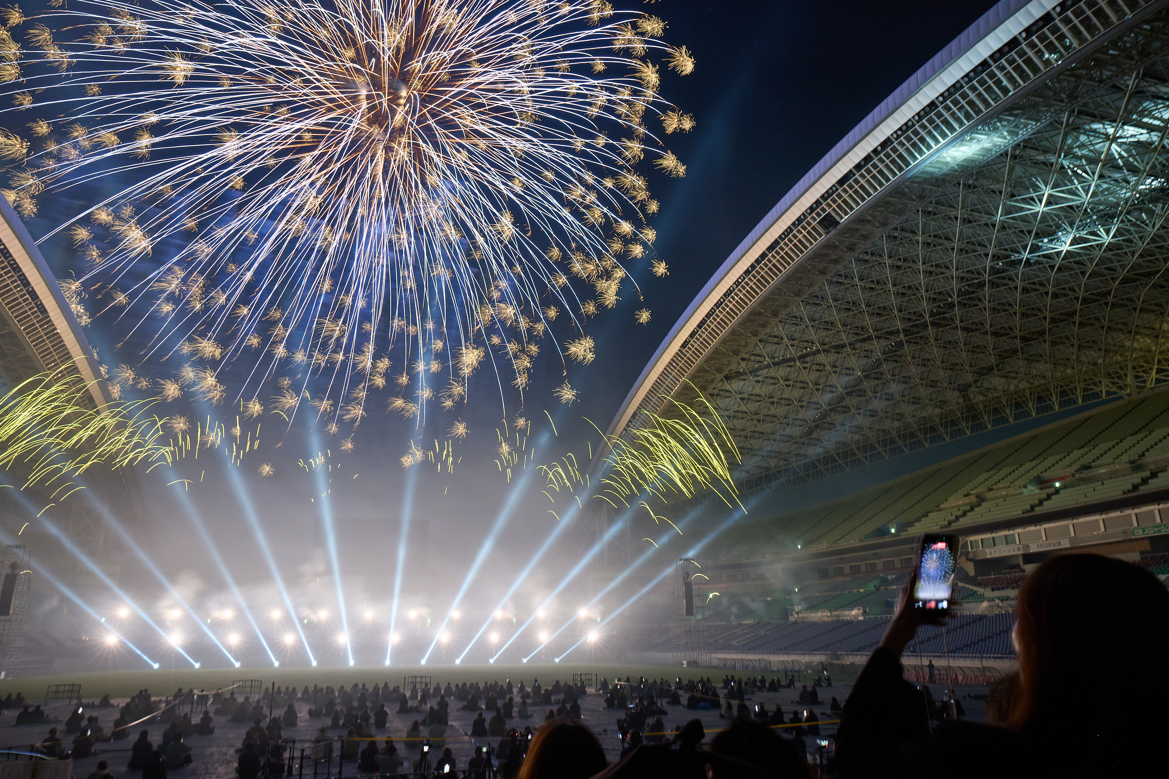 ラストを飾ったのは、ブルーノ初期の大ヒット曲でストレートなラブソング「Just The Way You Are」。締めくくりにふさわしく、ブルーノの甘い歌声とともに幻想的でダイナミックな大玉花火が次々と打ち上がる。まるで花が咲き乱れるように広がる光景に、観客から大きな歓声と拍手が沸き起こり、眩い光に包まれた壮大で感動的なクライマックス。世界初の花火体験を締めくくるにふさわしいフィナーレとなった。