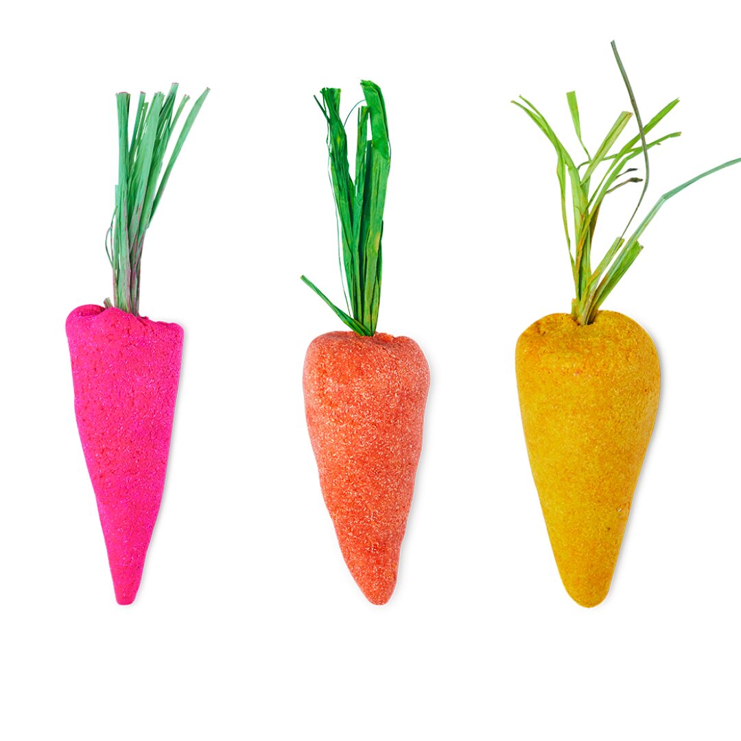 ニンジンを模した「ベイビーレインボウベジ」バブルバーは、キャロットパウダーを使用。やわらかな色彩とレモン、ベルガモットの明るい香りが、泡風呂タイムを一段と華やかに演出する。