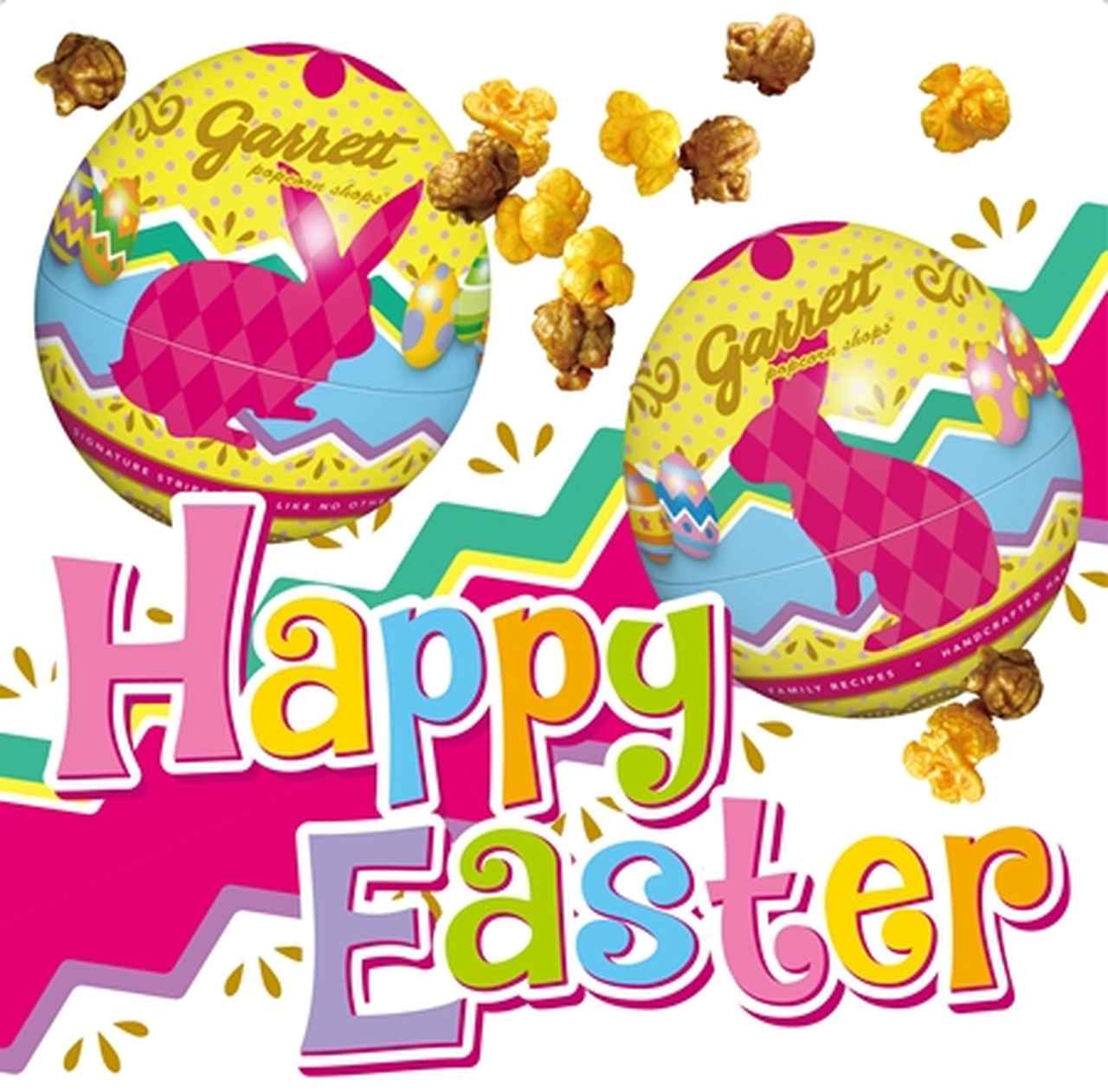 今年のイースターに合わせて、ギャレット ポップコーン ショップス初のエッグ型のデザイン缶が登場。 カラフルなパステルカラーを基調としたデザインには、キュートなうさぎが描かれており、目で見て楽しむことができる。