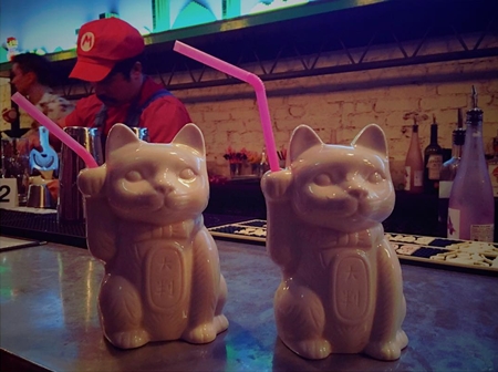 メニューは日本のビールや酒、ウイスキーなどのほか、カツサンドなど日本食も用意。また、飲み物が招き猫の形をしたカップに入っていたり、カクテルに折り紙の鶴が添えられていたりと、日本文化をあちこちに感じることが出来る。