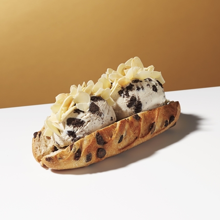 丸の内に期間限定で登場するハーゲンダッツベーカリーで提供するメニューをより多くの人に楽しんでもらうため、新たに開発したオリジナルパン2種(クロワッサンハット:280円・パンオカカオココ:240円)を含む11種が、全国のメゾンカイザー店舗にて同日4月19日(水)より販売される。