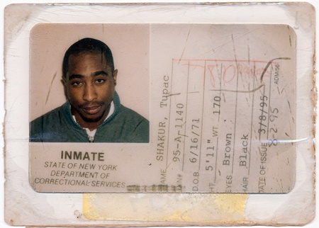 Pictured: The prison identification card carried by rap artist Tupac Shakur during his incarceration at the Clinton Correctional Facility in New York 1994-95. Producer Suge Knight posted his bail in exchange for a three-record contract. Ref: SPL1469571 280317 Picture by: Alexander Historical/Splash