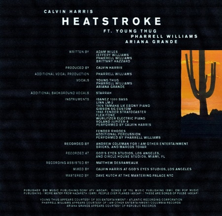 また新曲「ヒートストローク feat. ヤング・サグ、ファレル・ウィリアムス、アリアナ・グランデ」は、カルヴィンの他に、コラボアーティストのファレルとヤング・サグ(本名ジェフリー・ウィリアムズ)も楽曲制作に携わっている。