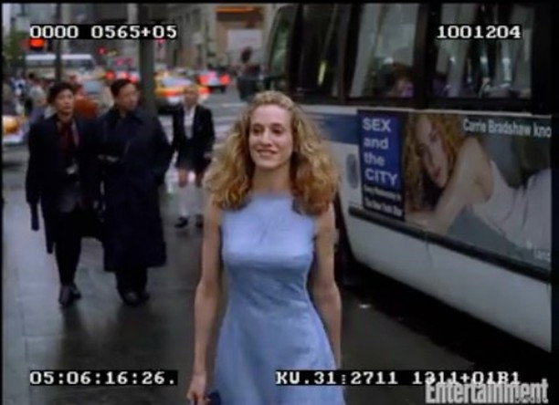 しかしお蔵入りとなった別バージョンでは、ブルー系の寒色を基調としたマークジェイコブスのドレスを着用したキャリーが、バスに貼られた広告を発見して、つまずくというなにか物足りなさを感じる演出。
