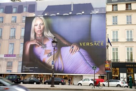 Atelier Versaceのファッションショーを訪れたガガは、コレクション後デザイナーであるドナテラと手を繋いで登場。