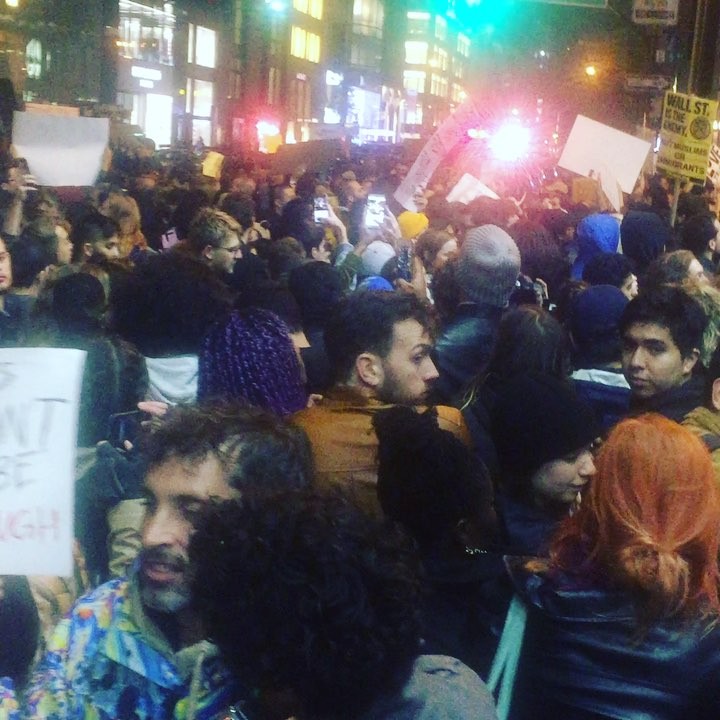 対立候補だった民主党のヒラリー・クリントン氏への支持が多かった、ニューヨーク、ロサンゼルス、シカゴ、ボストンなどの主要都市の若者たちが、現在SNS上でもトレンド入りしている「# NotMyPresident(私の大統領じゃない)」や「# TrumpProtest(トランプ反対運動)」などの文字が書かれたプラカードを掲げ、数千人規模で路上を占拠。一部では、逮捕者も出るほどの騒動へと発展している。