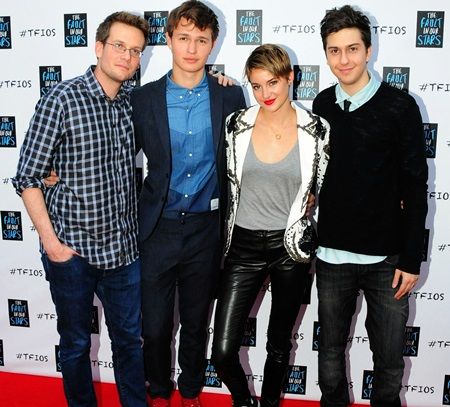 左から原作者のジョン・グリーン、アンセル・エルゴート、シェイリーン・ウッドリー、ナット・ウルフ。