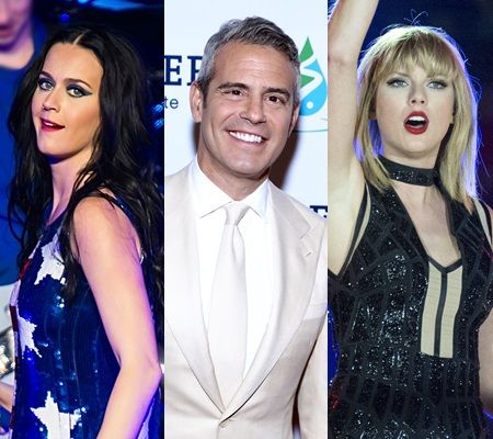左からケイティ・ペリー、アンディ・コーエン、テイラー・スウィフト
