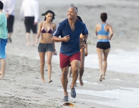 映画『ベイウォッチ』撮影中のドウェイン。