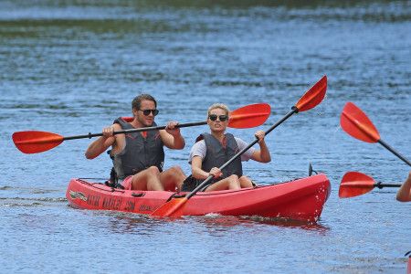 彼氏のトムとハワイ旅行中にカヤック遊び。