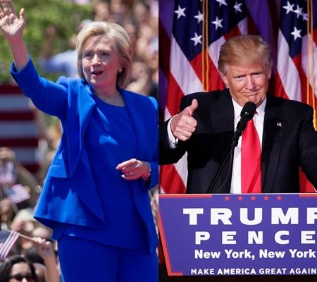 これまでの選挙戦でトランプ氏率いる共和党がテーマカラーにしてきたのは赤。そして、クリントン氏率いる民主党のテーマカラーは青だった。