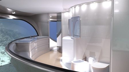 UFOの形をしたこの乗り物は広さが300平米以上あり、室内には水中ビューつきの寝室やキッチンが、屋外にはテラスなどがついており、ソーラー・水力・風力で動かせるため、燃料の補給なしで半永久的に動くという。