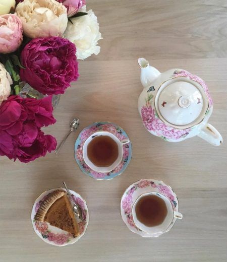 食後は自分がプロデュースしたRoyal Albertのティーセットでお茶をしながらパイを堪能してホッとひと息。