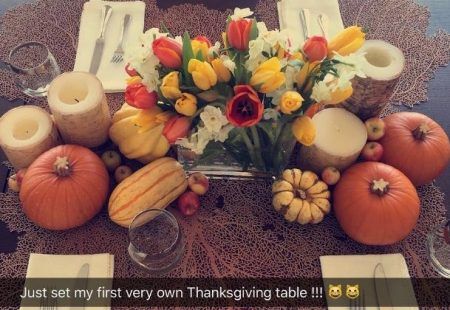 今年は妹のベラ、母のヨランダ、弟のアンワーとは別々にこの日を過ごしたジジ。初めて自分でサンクスギビング・ディナーのテーブルをセットし、「初めて自分でやったわ!」と誇らしげに写真を公開していた。