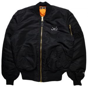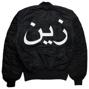 左胸と背中にアラビア語で「ゼイン」とロゴが入ったナイロン製のミリタリージャケット。