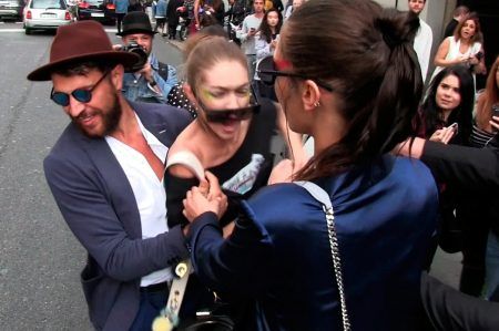 1、ジジ・ハディッド、イタズラ男に顔面パンチ @ミラノ
