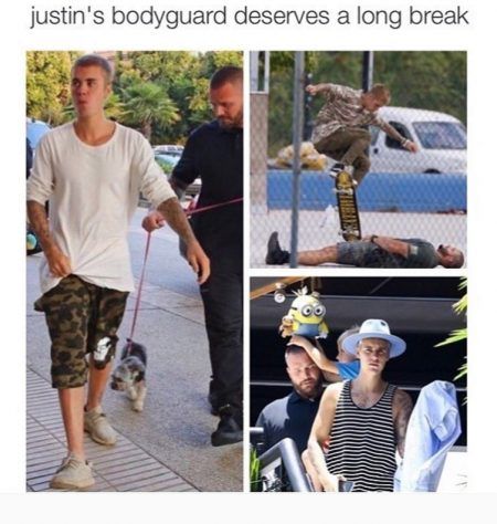 ただ単にジャスティンの身の回りの安全を守るだけでなく、いろんな事につき合わされているボディガード男性の健気な様子に、ネット上では「ジャスティンのボディガードには長期休暇を与えてあげるべき」というインターネットミーム(※)まで誕生するほどに。