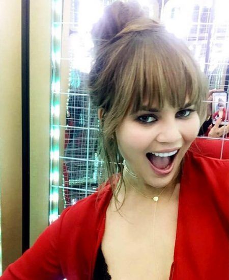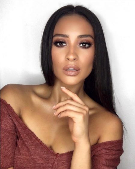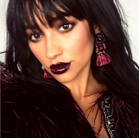 前髪ナシのロングヘアの印象が強いドラマ『プリティ・リトル・ライアーズ』のシェイは、ダークリップが主役の秋メイクにスウィーピーなシースルーバングを合わせて。