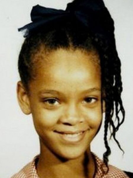 プリントの元となった学生時代のリアーナの写真。シンガーとしてデビューするずっと前、本名のロビン・リアーナ・フェンティとして故郷バルバドスで普通に学校に通っていた時代のもの。