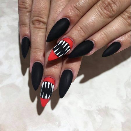 ポイント形ブラックネイルでネイル全体が牙のよう!