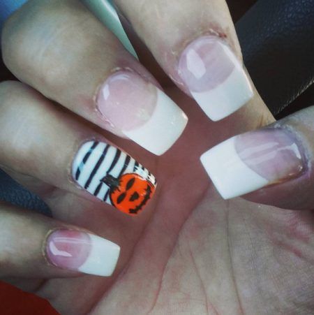 フレンチネイルから覗くかぼちゃランタンなら派手すぎずGOOD。