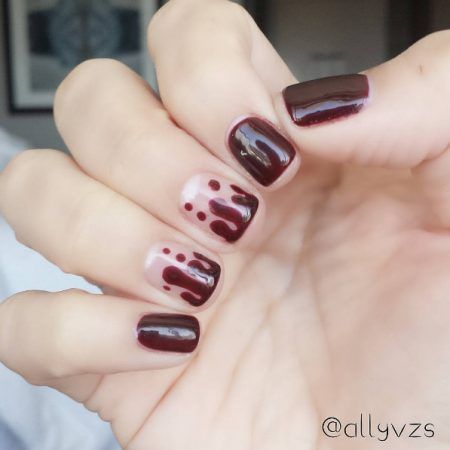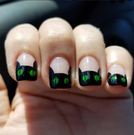 血のりネイルかと思いきや、よく見ると黒猫シルエットに。
