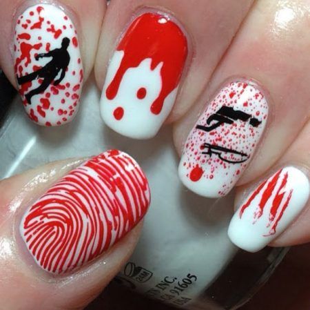 指紋、人影、銃…、殺人ミステリー仕立ての血のりネイルが新鮮。