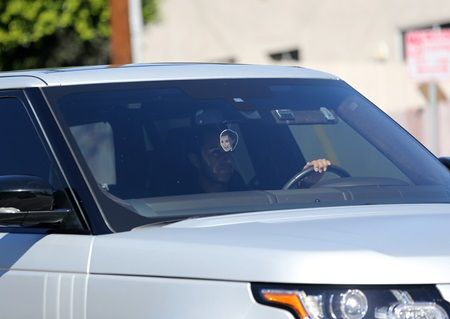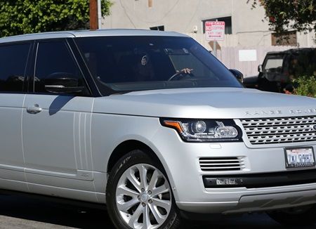 この日キムの愛車のひとつであるレンジ・ローバーを運転していたのは、キムのスタッフ。フロントロウ編集部では、運転席にぶら下がっているあるものに注目した。
