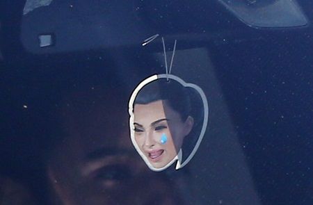 今週、LAでとらえたリアリティスターのキム・カーダシアンの愛車に、ある驚きのものがぶら下がっているのを発見した。