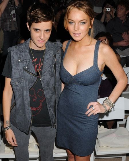 2008年9月、当時の恋人リンジー・ローハン(右)と共に姉のファッションショーに現れたサマンサ・ロンソン(右)。