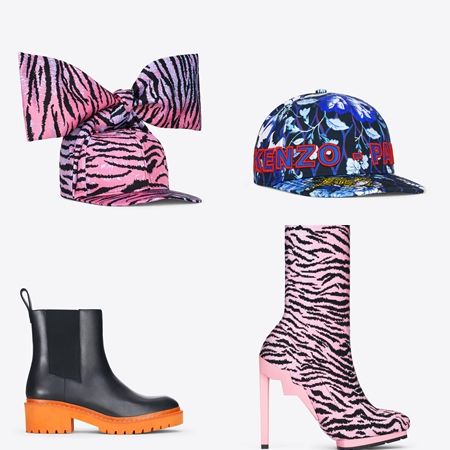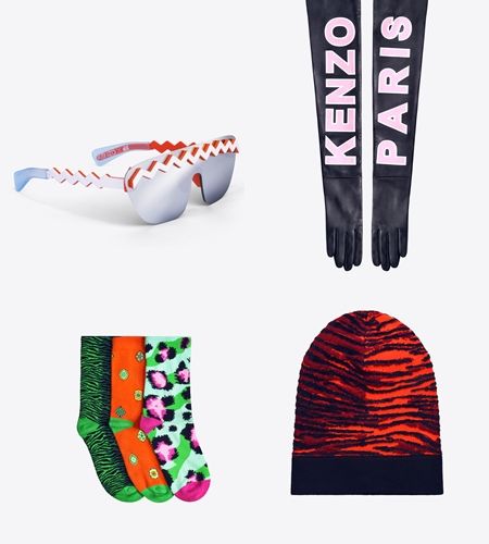 今回のコレクションは小物のラインナップも豊富で、どのアイテムもスタイルの主役になれる、Kenzoらしいポップでパワフルなデザインが取りそろっている。