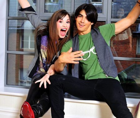 『キャンプ・ロック』プロモーション中のジョーと、共演者でシンガーのデミ・ロヴァート。