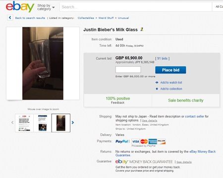 「ジャスティン・ビーバーが牛乳を飲んだグラス」がネトオクで信じられない額に