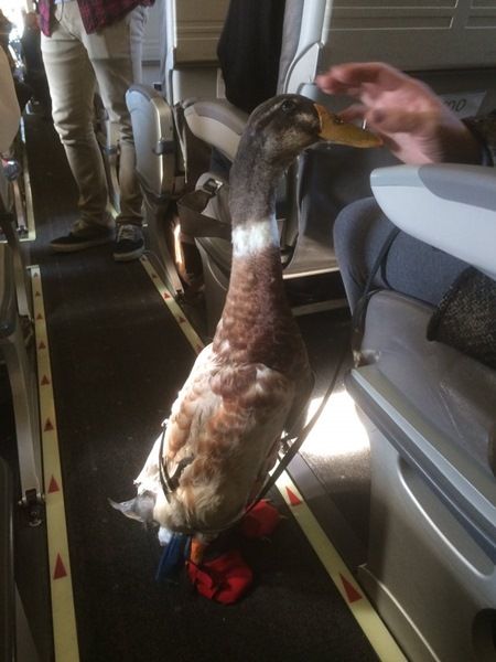 米シャーロット発アシュビル行きの飛行機に飼い主の精神的サポート動物として搭乗した「あひるのダニエル(Daniel The Duck)」が、ネット上で時の人ならぬ時のあひるになっている。