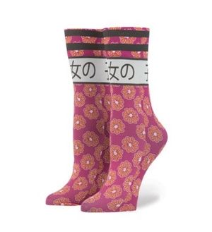 ソックスには「悪い子」や「女の子」「うるせえ」の日本語の文字や、芸者の姿や日本風の花などがデザインされ、日本の影響が全開。