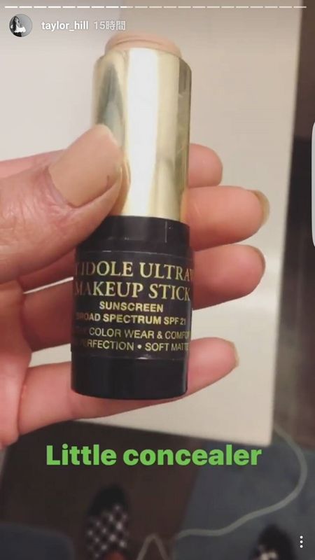 彼女のスッピンからメイク完成までの行程と、テイラーが今回のメイクで使用した愛用アイテムもあわせて紹介。