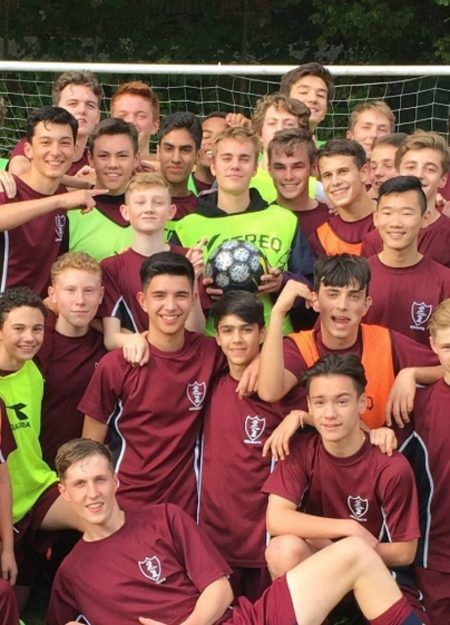 日本では高校3年生にあたるシニア・クラスの男子生徒たちに混ざってサッカーを楽しんだジャスティンが、授業後に彼らと一緒に撮影した写真がコチラ。