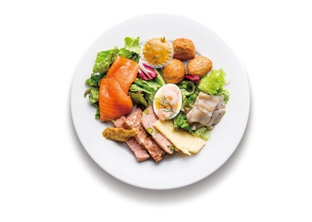スウェーデンの伝統料理が一皿で8種類も楽しめる欲張りなプレートを用意。 たくさんの種類の料理をテーブルに並べ、 少しずつプレートにとって食べるのが、 本場スウェーデン流。