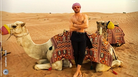 先月末、自身が香水の広告塔を務めるファッションブランド、ヒューゴ・ボス(Hugo Boss)のイベントのためドバイを訪問していたザック。そんな彼はイベントとは別に砂漠にも足を伸ばし、広大な大地を楽しんだ。ザックがドバイを訪問していた3月末や4月頭は気温がすでに30度を超える日が多く、彼も思わず上半身裸に。