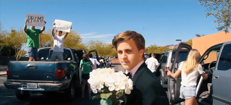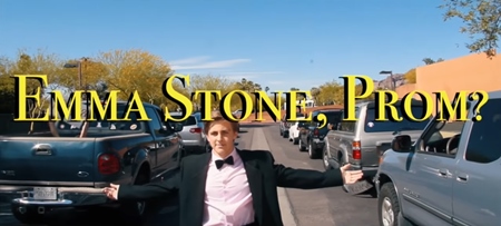 最後には、10人ほどの友人たちが「プロム」と書かれた紙を持って、みんなでエマにお願い。ジェイコブが「エマ・ストーン、僕のプロムの同伴相手になって」と頼んで動画は終了する。